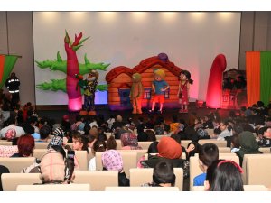 Şaban Cengiz Kültür Merkezinde iki seans olarak gösterime giren müzikali izlemek için gelen çocuklar, velileriyle birlikte salona akın etti.