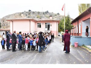 Kaymakam Aydın Erdoğan’a, İlçe Milli Eğitim Müdürü Tahir Kibar, Çavuş Jandarma Karakol Komutanı J.Üçvş. Halil Toklu ve köy muhtarı Mehmet Özer eşlik etti.
