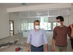 Belediye Başkanı Mehmet Tutal, inşaat çalışmaları tamamlanmak üzere olan KOMEK binasında incelemelerde bulundu.